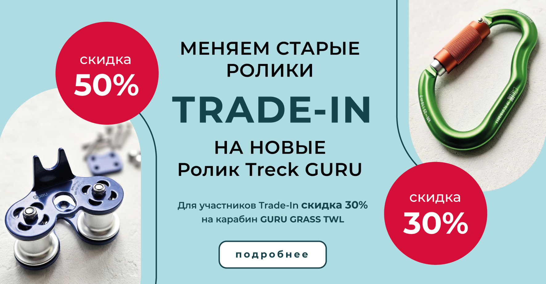 Что делаем: меняем любой спортивный ролик в любом состоянии на новенький ролик Treck GURU со скидкой 50% 😱