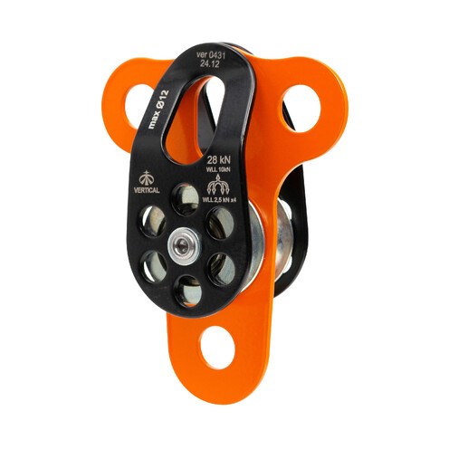 Дополнительные отверстия позволяют присоединить еще одни или два ролика, зажим в качестве блокиратора обратного хода или закрепить конец веревки, участвующей в полиспастной системе. Также можно объединять ролики для передвижения грузов по двойным горизонтальным перилам.