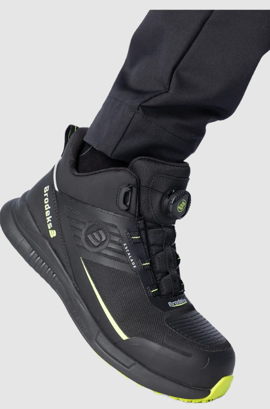 Рабочие ботинки Brodeks Escalade - технологичная обувь для ИТР, руководителей и работников, сочетающая спортивный комфорт и стандарты безопасности. Система быстрой фиксации и верх из микрофибры с ТПУ-усилением гарантируют мобильность и долговечность.
