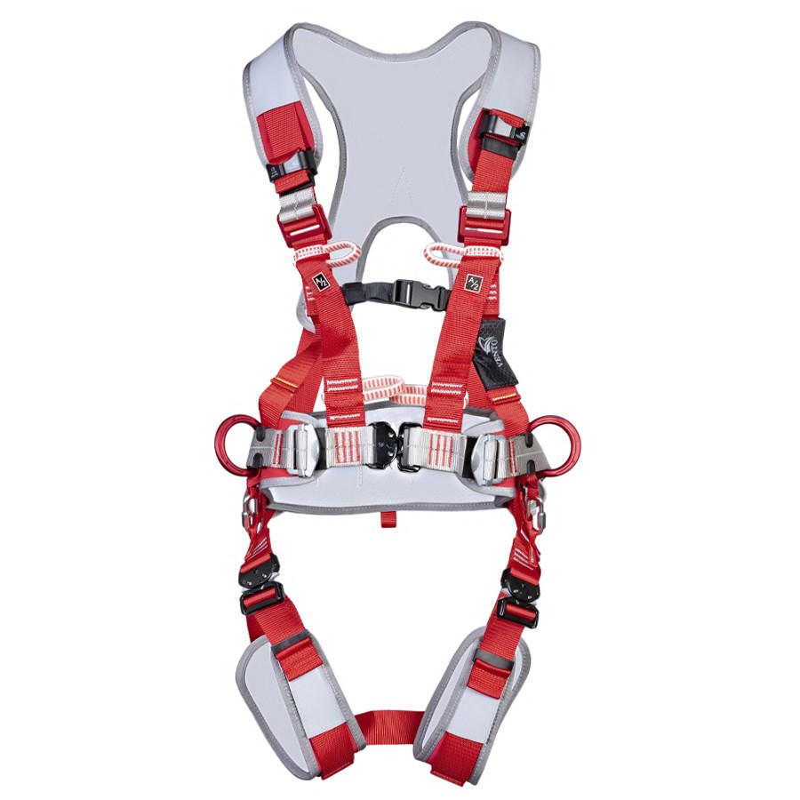 Имеются 3 страховочные точки: 1 на спине и 2 фронтальные, в т.ч. низкорасположенная поясная – для совместного использования с СИЗ ползункового типа на вертикальных жестких и гибких анкерных линиях. Конструкция включает 3 точки для удержания и позиционирования: две боковые и одну сзади на поясе.