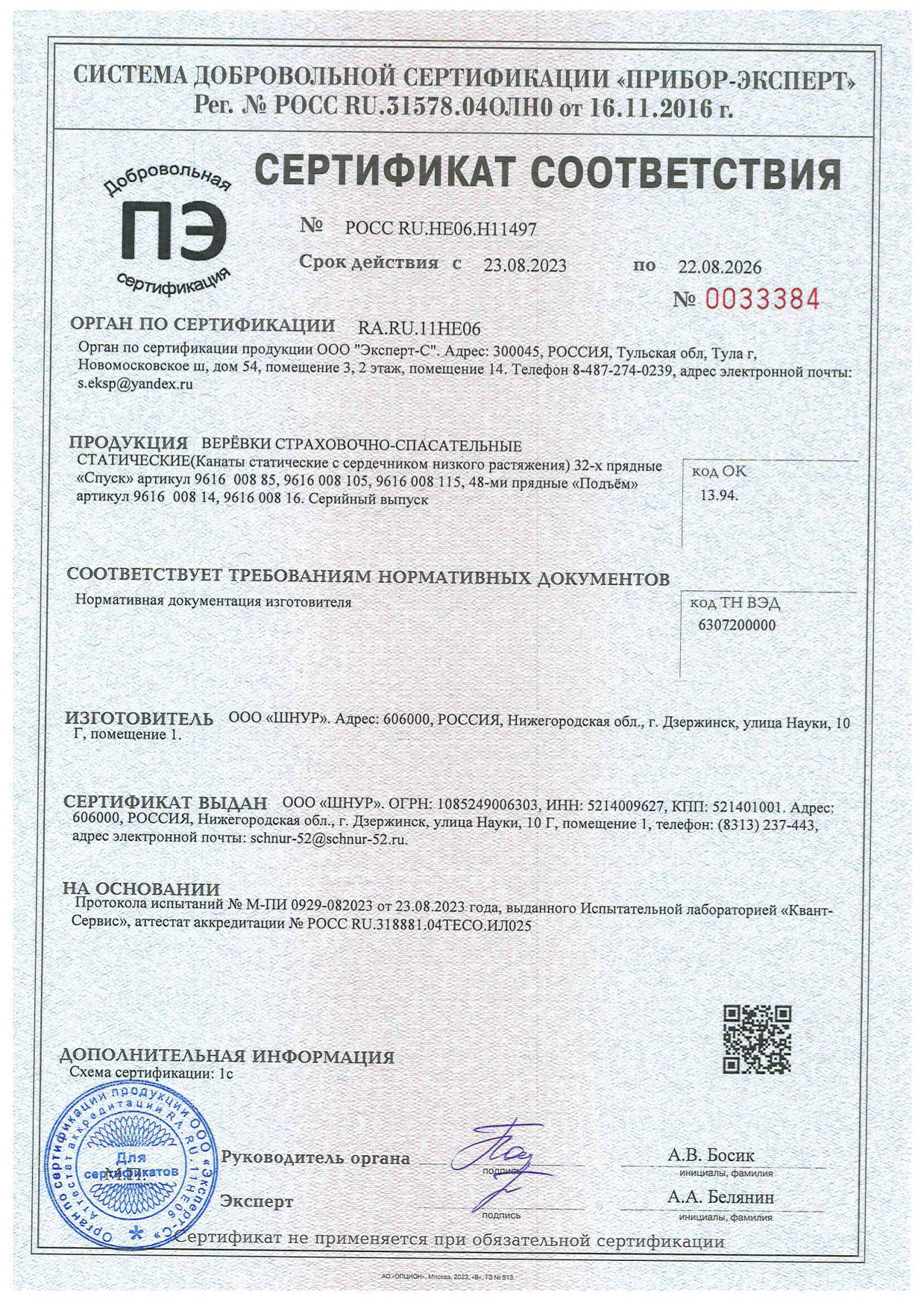 Статическая веревка Шнур ПОДЪЕМ 32 выпускается в диаметрах 14 мм и 16 мм.